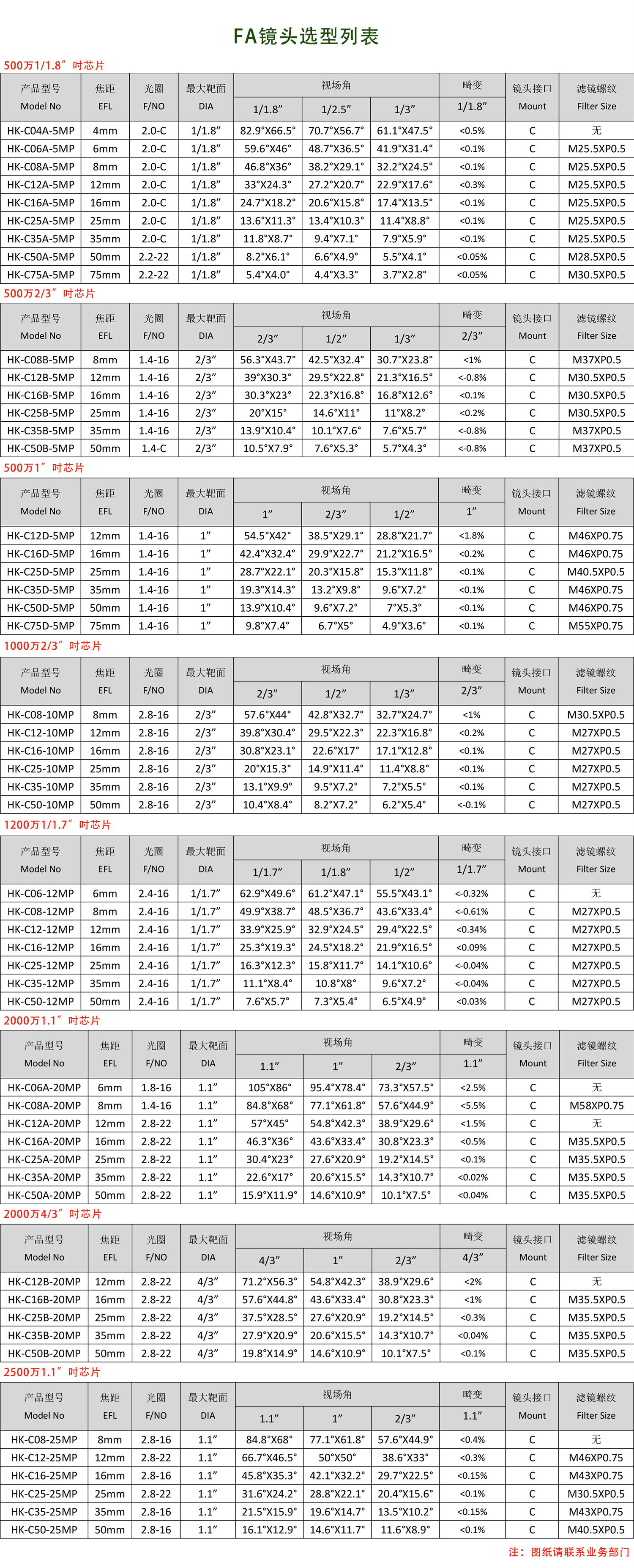 工业定焦镜头